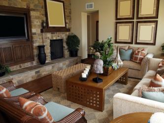 | Cojines, mantas y adornos de flores secas para hacer del salón un lugar más cálido. |