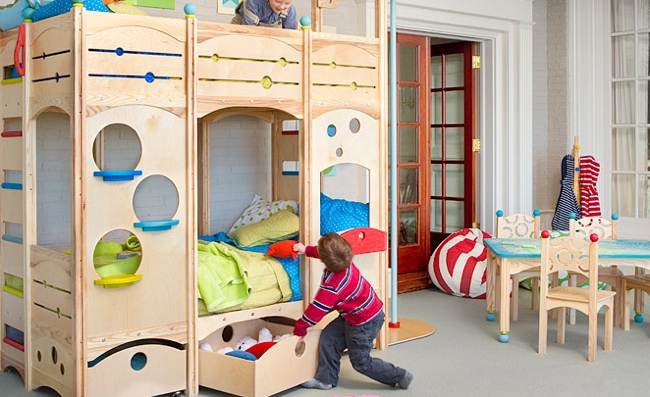 Los que tenemos niños sabemos que ocupan la mayor parte del tiempo que están en casa en su habitación jugando, unas veces solos, otras con hermanos y otras con sus amigos. Pero esa habitación también es el lugar donde duermen, por lo que nuestra propuesta de hoy es juntar esos dos elementos : dormir y jugar. Para ello Rhapsody beds de Cedarworks ha realizado conjuntos compactos validos tanto para el descanso como para el ocio de los niños, que además de funcionales ayudan a crear un mundo de fantasía en el que los mas pequeños de la casa puedan jugar y divertirse. En estos muebles se juega con las alturas, las camas suelen estar en la zona superior, accediendo a ellas por medio de escaleras o rampas y bajando por divertidos toboganes. La zona inferior normalmente se dedica a la zona de recreo.