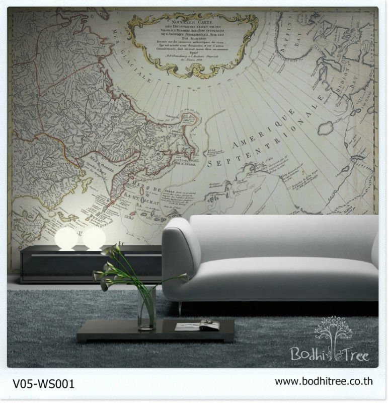En decoración son varios los aspectos a tener en cuenta : la distribución, el mobiliario, los textiles y los revestimientos de las paredes y suelos. Hoy vamos a dedicarnos a uno de estos últimos, los revestimientos de las paredes en concreto al papel pintado. No hay forma mas eficaz y sencilla de dar personalidad a una estancia como utilizar en alguna de sus paredes papel pintado. Nos centraremos en esta ocasión al papel pintado que representa a mapas del mundo algo muy en tendencia en estos momentos. Su ubicación ideal suele ser en el salón, detrás del sofá o en la zona de la librería , pero os vamos a mostrar mas estancias de la vivienda donde lo podéis colocar con un resultado espectacular.
