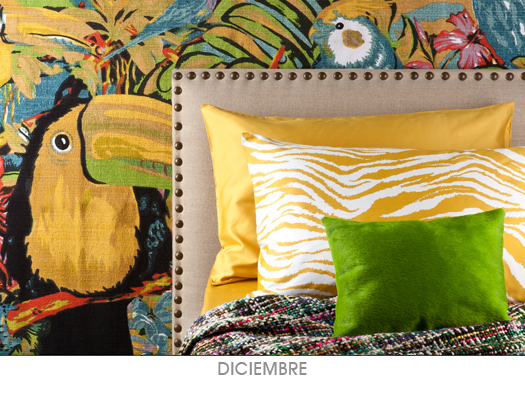 Como os comentamos en el articulo de tendencias decorativas, los diseño y textiles con motivos tropicales son una gran apuesta para este 2013. Así que atrévete a llenar los edredones, colchas o cojines de flores tropicales, pájaros exótico y mucho color.