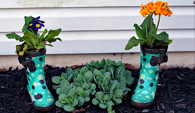 Con la inminente llegada de la primavera ya podemos empezar a pensar como vamos a decorar y arreglar los jardines y terrazas de nuestra casa. Os propongo una idea, utilizar esas botas de agua ya viejas o que se les han quedado pequeñas a vuestros hijos.
