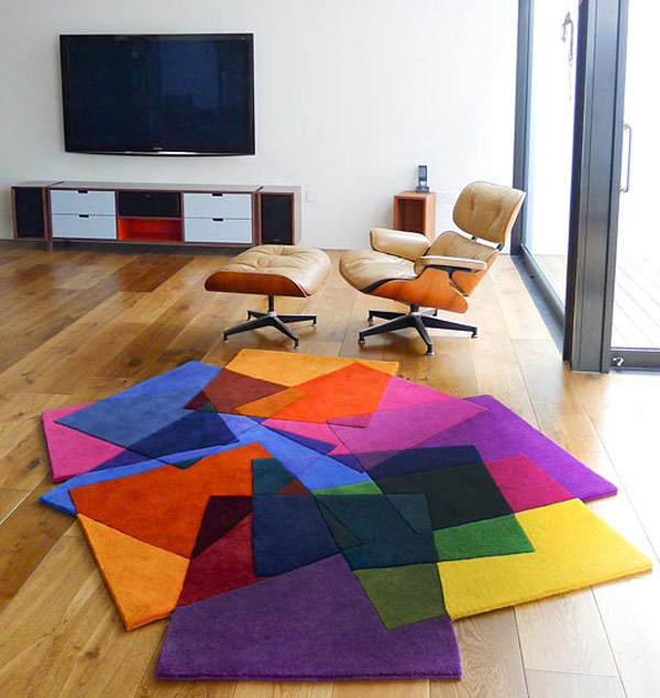 After Matisse: Esta alfombra irregular esta creada a partir de un colage de 26 colores que superpuestos hacer un efecto de transparencias.